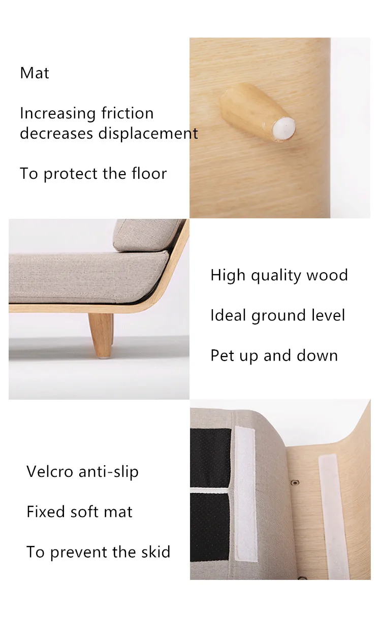 Cama para mascotas de madera maciza para gatos y perros, sofá cama, estera para perros
