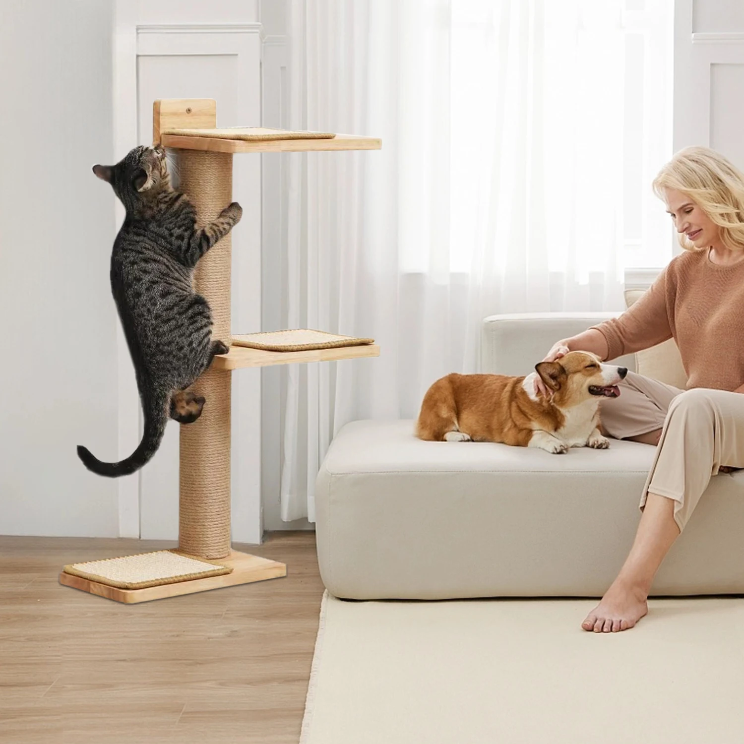 Versatile Cat Furniture - Thanks to its flexible design, cat wall furniture can meet various daily needs of cats, cats can climb, scratch, nap, play on it. The cat stand can be used in corners, suitable for convex and concave corners, you can place it as needed, and its natural color makes it a beautiful decoration in your home.