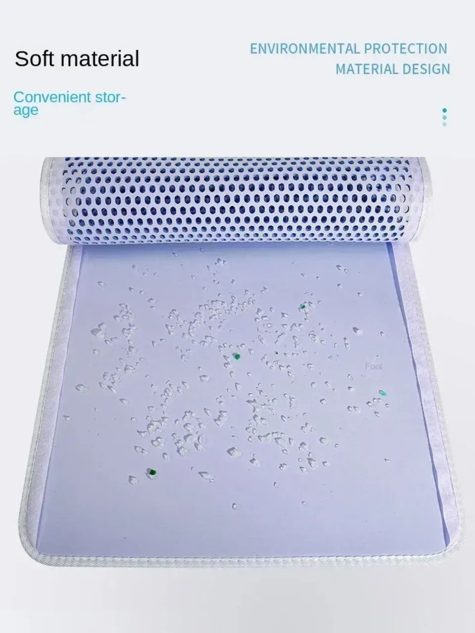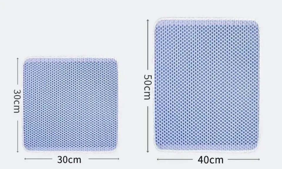 El cojín es muy adecuado para atrapar arena para gatos y garras delicadas.Nuestro suave material EVA es muy suave para las garras de gato sensibles.A los gatos incluso les gusta pisarlo o tomar una siesta por la tarde.El diseño de doble capa puede filtrar la arena para gatos y recogerla en la parte inferior.Agite suavemente para liberar la basura.