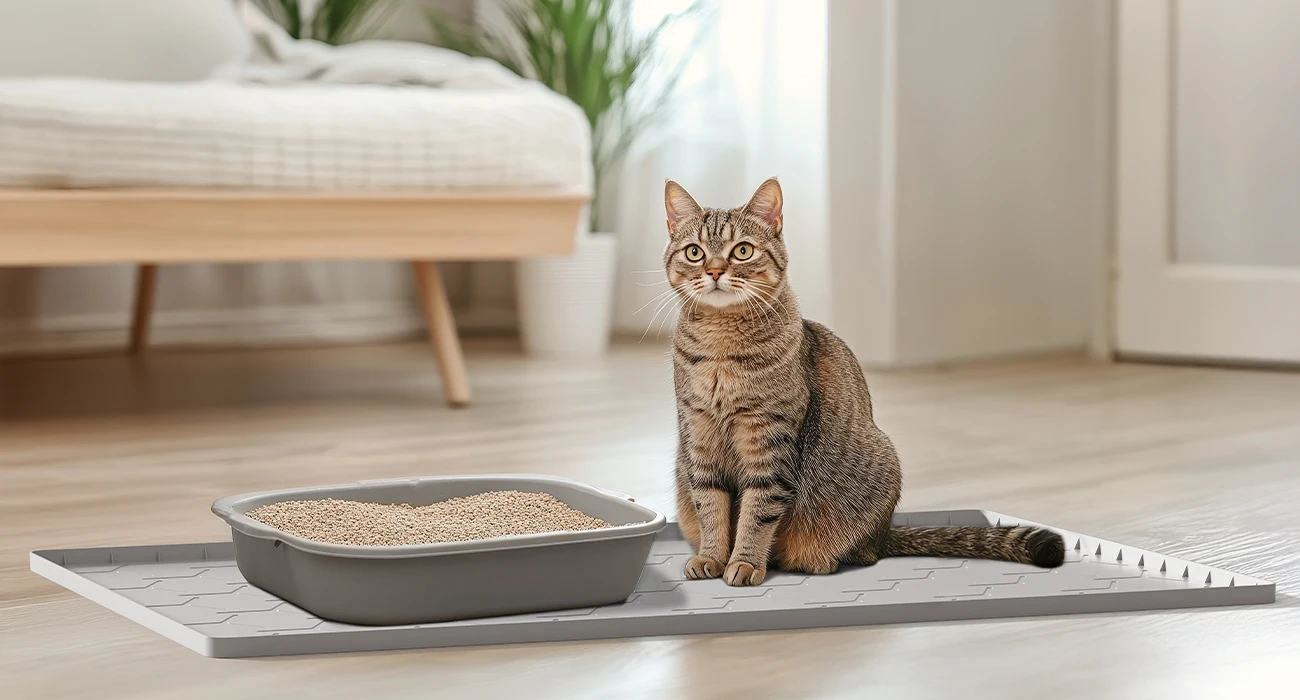Úselo como tapete para atrapar arena para gatos atrapa eficazmente la arena y la orina, evitando que se extiendan por todo el suelo.
