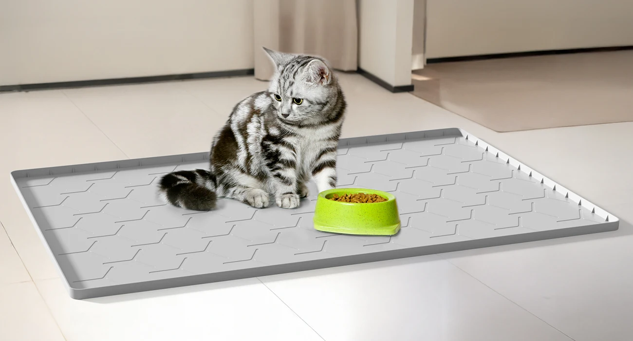 Estera para gatos impermeable de silicona. Alfombrilla grande 34x22 pulgadas para caja de arena (gris)