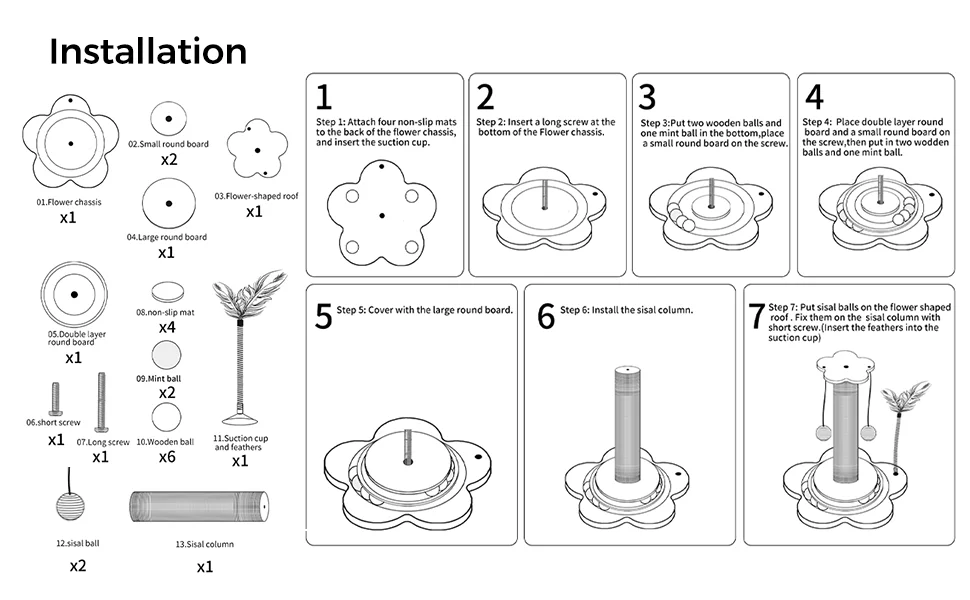Juguete para gatos de madera maciza con forma de pétalo con bola de hierba gatera, plato giratorio para gatos de madera maciza, palo de Teaser, bola de Teaser, poste para rascar gatos